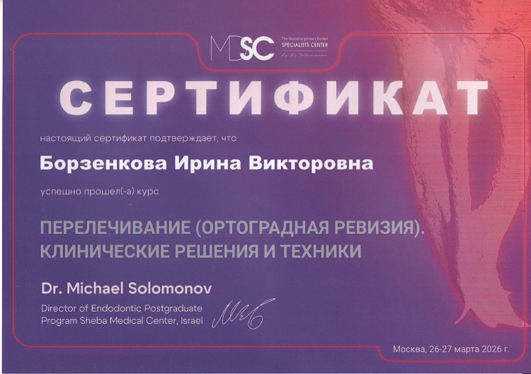 - Проведение осмотра и диагностики стоматологических заболеваний, составление плана лечения с использованием современных методик (визиография, КЛКТ, внутриротовая камера)
