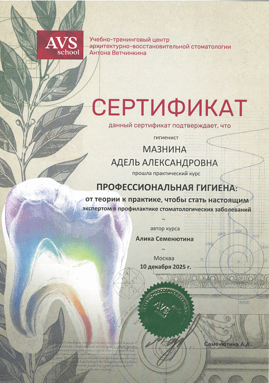 Профессиональная гигиена — это искусство раскрывать естественную красоту ваших зубов. С помощью современных технологий бережно очищаю всё лишнее с ваших зубов, чтобы вы увидели, как сияет ваша настоящая улыбка. Ведь когда пациент восклицает: «Неужели это мои зубы?!» — это и есть высшая награда для меня.