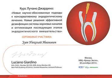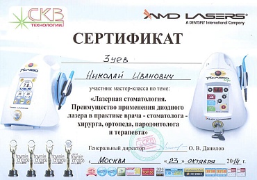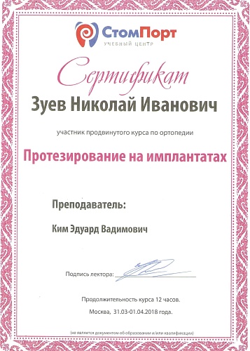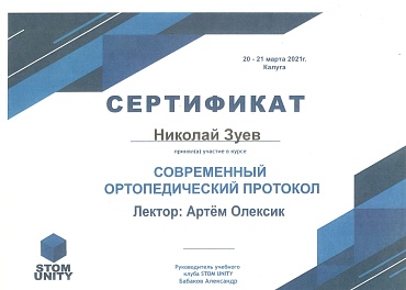 2014Профессиональная переподготовка – государственное бюджетное образовательное учреждение высшего профессионального образования «Курский государственный медицинский университет» Министерства здравоохранения Российской Федерации», 15.12.2014, 04/0014187, Стоматология ортопедическая.