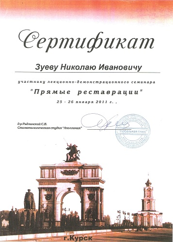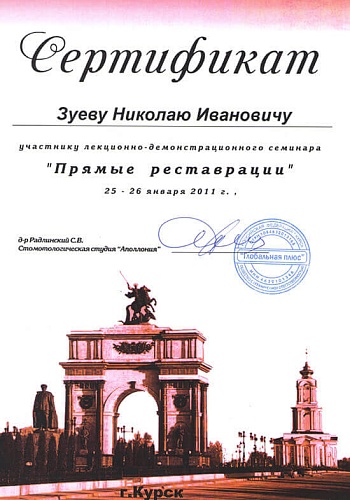 2011Интернатура – государственное бюджетное образовательное учреждение высшего профессионального образования «Курский государственный медицинский университет» Министерства здравоохранения и социального развития Российской Федерации», 31.08.2011, АА/000097, Стоматология общей практики.
